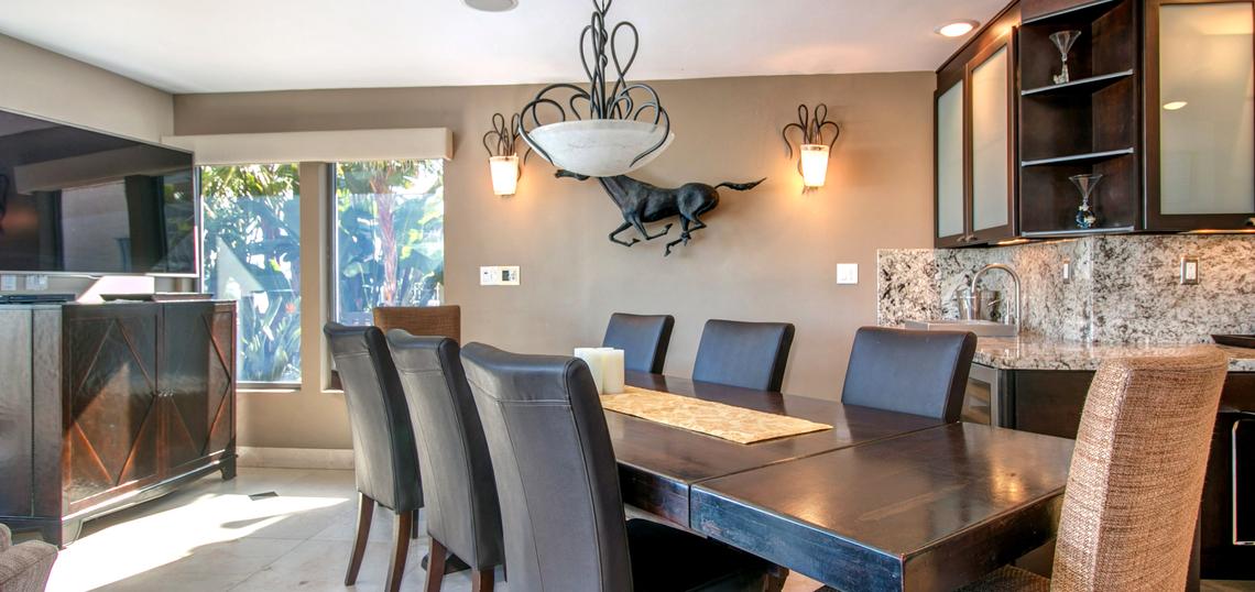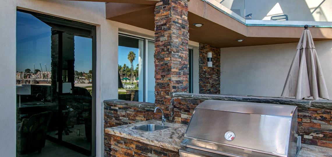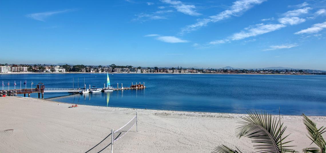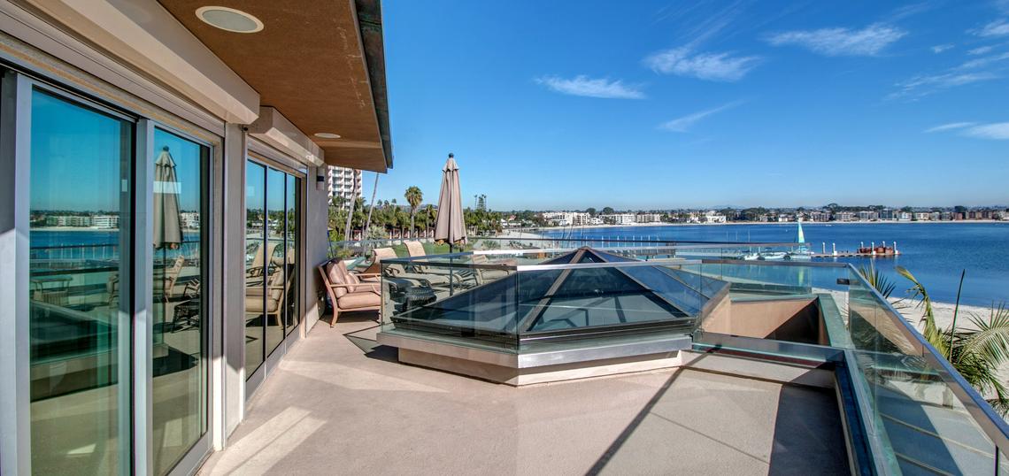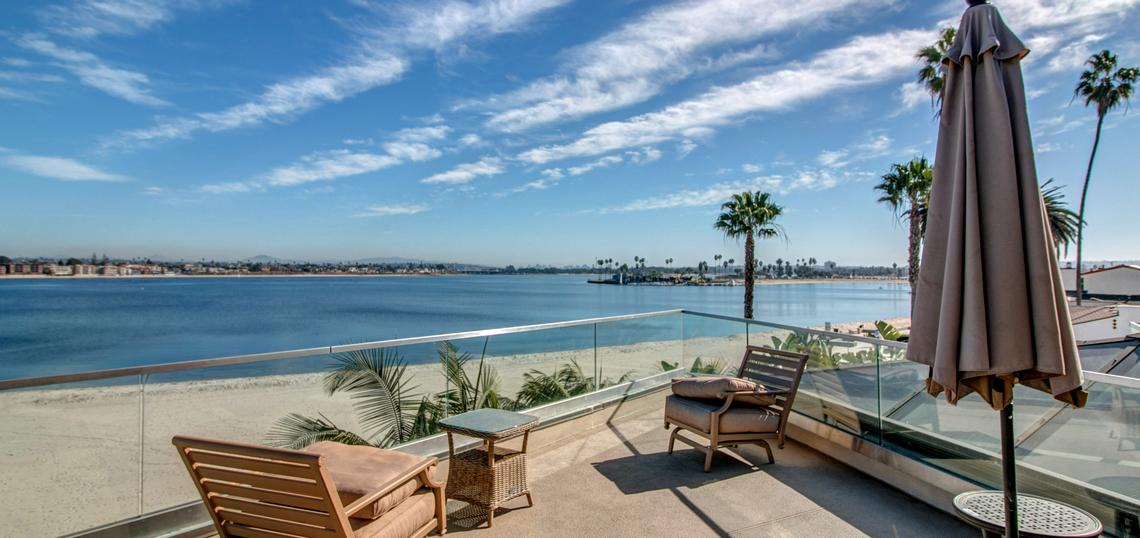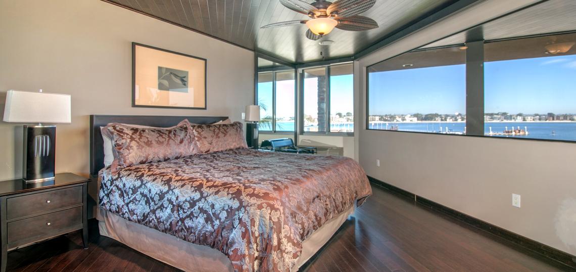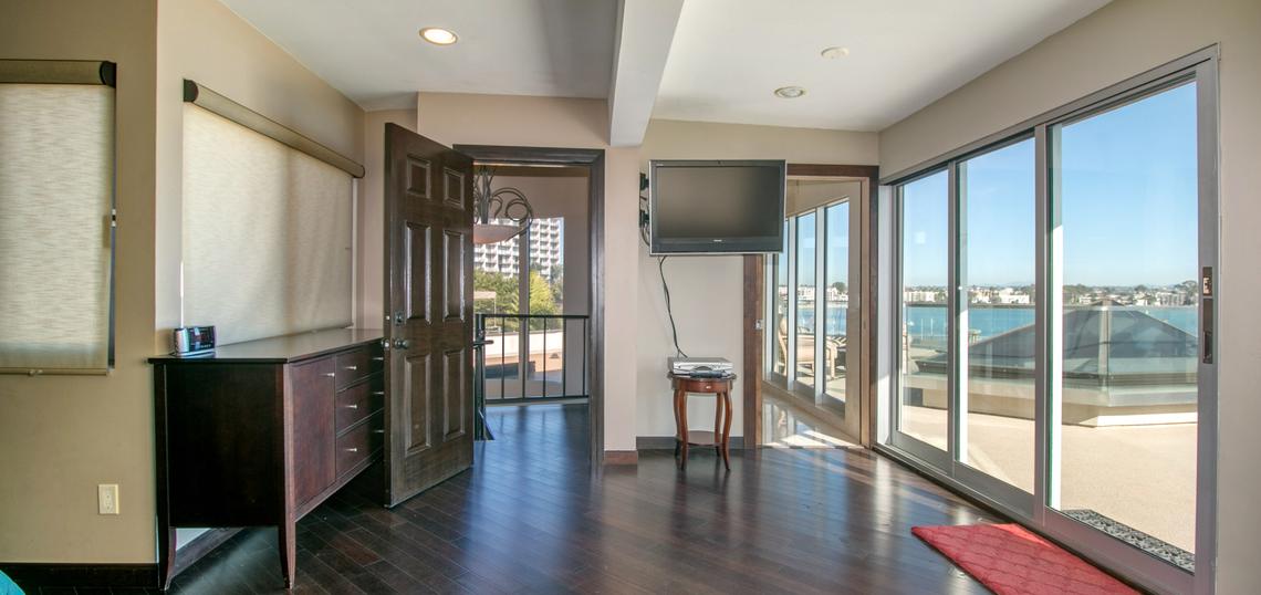 This gorgeous four bedroom home is part of a property known as 'The Villa on the Bay.' A mix of charming tropical and sleek, modern decor run throughout the home. Spacious, sun-filled rooms and panoramic views of Sail Bay, make this an ideal vacation destination for your family and friends. You will truly enjoy luxurious living with the state-of-the-art entertainment system, marble floors and high-end appliances in the kitchen and laundry room. This house can sleep up to 10 people. The master bedroom is located on the 2nd floor and has a king-sized bed and stunning views of the water. The second bedroom is located on the second floor, and has a queen-sized bed. The third bedroom is also located on the second floor and has two twin-sized beds. The 4th bedroom is located on the 3rd floor and has a queen with an en suite bath and private patio. 'The Villa' also has two other condos on the property which when combined with this house creates a seven-bedroom resort that can sleep up to 20 people. High speed internet will keep you as connected to the outside world as you desire. Although your time will most likely be spent outdoors on the patio watching the boats sail past or lounging on the sandy bay shores; spend your evenings by the outdoor fireplace and cooking dinner on the barbeque as you watch seasonal fireworks from nearby Sea World. There is a two-car garage for parking convenience. NO PETS PERMITTED.